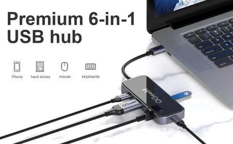 QGeeM 6 IN 1 MIRROR USB C to HUB HDMI 4K@30HZ 100W power delivery USB-C HUB
