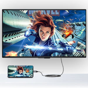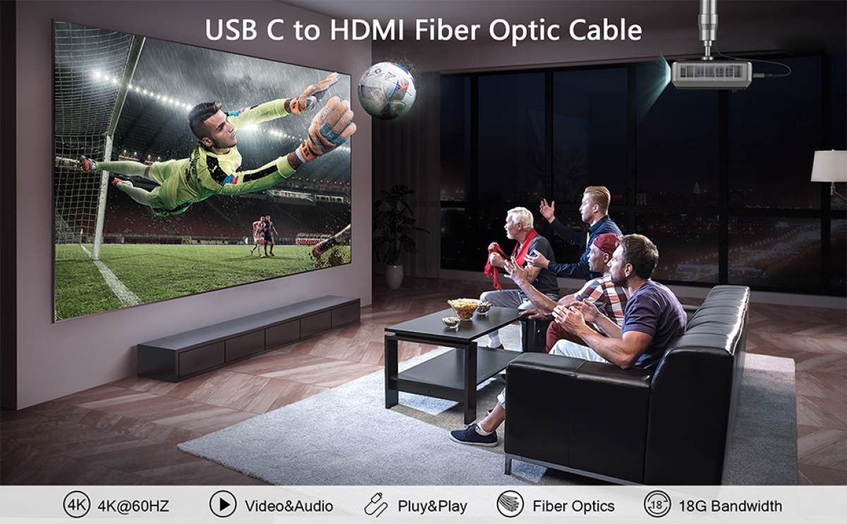 - USB-C to HDMI: As seen on the screen, the Type-C to HDMI fiber optic cable allows you to effortlessly connect your USB-C laptop or Android phone to an HDMI equipped monitor/TV/projector; Easily display sports events, movies, TV shows, games, presentations, websites, and slides on the big screen.